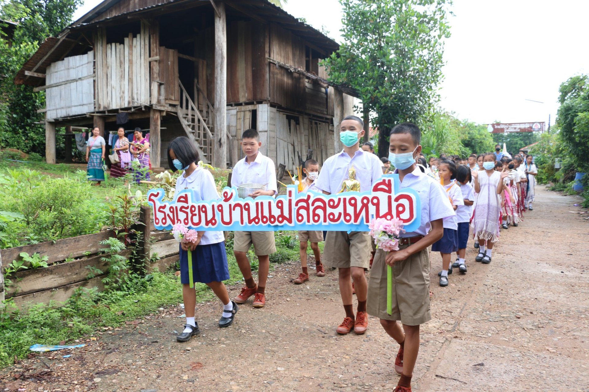วันที่ 8 กรกฎาคม 2565 ช่วงเช้า เวลา 09.00 น. คณะครูและบุคลากรทางการศึกษา ผู้ปกครอง พร้อมด้วยนักเรียนโรงเรียนบ้านแม่สละเหนือ จัดกิจกรรม ถวายเทียนพรรษา ทำบุญตักบาตรข้าวสารอาหารแห้ง ประจำปี 2565 ตามประเพณีของไทย เนื่องในวันเข้าพรรษา เพื่อสืบสานงานประเพณีวัฒนธรรมของท้องถิ่นให้คงอยู่สืบไป และที่สำคัญเพื่อปลูกฝังขนบธรรมเนียมประเพณี และร่วมกันบำเพ็ญประโยชน์เก็บขยะ ณ สำนักสงฆ์บ้านแม่หละยาง ตำบลแม่หละ อำเภอท่าสองยาง จังหวัดตาก และในช่วงบ่าย เวลา 13.00 น. โรงเรียนจัดกิจกรรมให้ความรู้ ตอบคำถามเกี่ยวกับวันสำคัญทางพระพุทธศาสนาเนื่องในวันอาสาฬหบูชาและวันเข้าพรรษา เพื่อให้นักเรียนได้ทราบถึงประวัติความเป็นมา ตระหนักและเห็นความสำคัญ พร้อมฝึกการนั่งสมาธิ ณ หอประชุมโรงเรียน