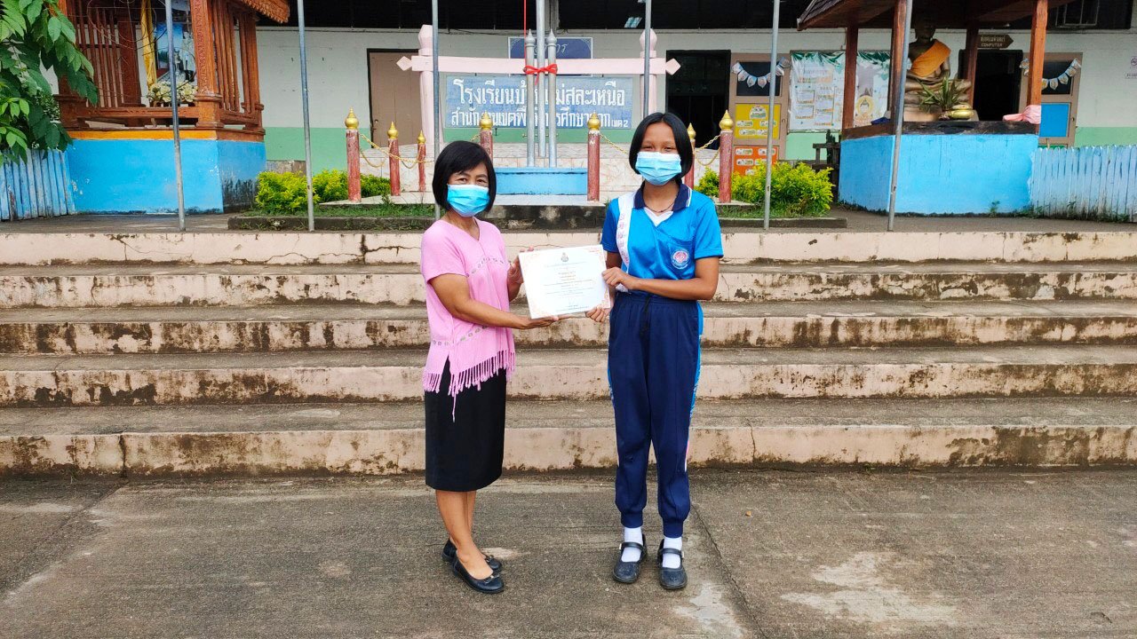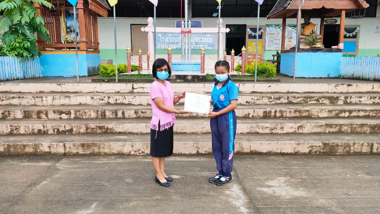 วันที่ 23 กันยายน 2565 นางสาวหัสยา คงแก้ว ผู้อำนวยการโรงเรียนบ้านทุ่งถ้ำ รักษาการในตำแหน่ง ผู้อำนวยการโรงเรียนบ้านแม่สละเหนือ มอบหมายให้นางสุทินา วงษ์หมื่น ครูโรงเรียนบ้านแม่สละเหนือ มอบเกียรติบัตรรางวัลระดับเหรียญทองและกล่าวแสดงความยินดีกับนักเรียนที่เป็นตัวแทนเข้าร่วมการแข่งขันสวดมนต์หมู่สรรเสริญพระรัตนตรัย ทำนองสรภัญญะ (สวดมนต์แปลไทย) ระดับประถมศึกษา (ป.4 - ป.6) งานการแข่งขันกิจกรรมทางวิชาการ เนื่องในงานสัปดาห์ส่งเสริมพระพุทธศาสนา วันอาสาฬหบูชาและวันเข้าพรรษา ประจำปี 2565 ซึ่งจัดโดยสำนักงานเขตพื้นที่การศึกษาประถมศึกษาตาก เขต 2