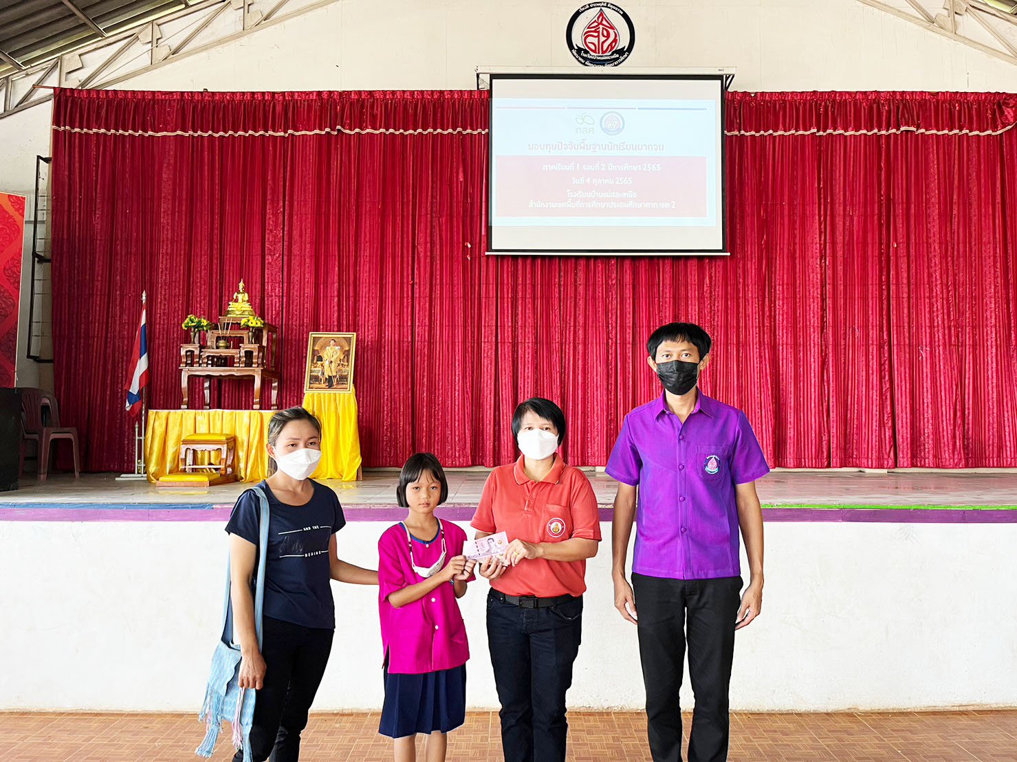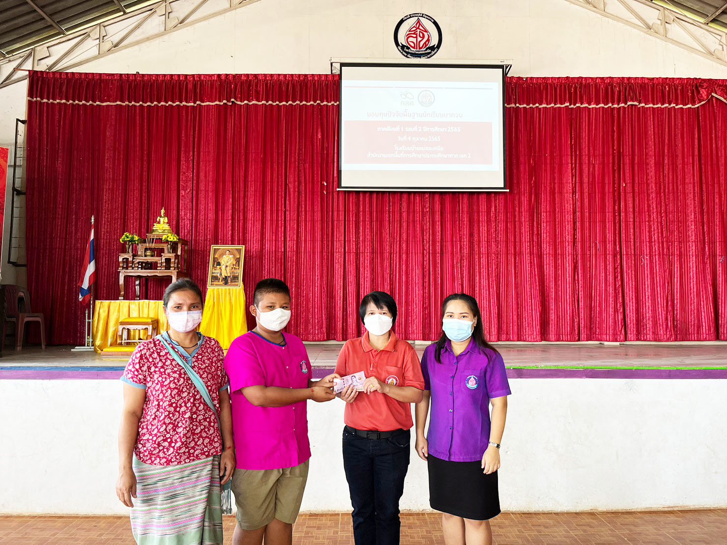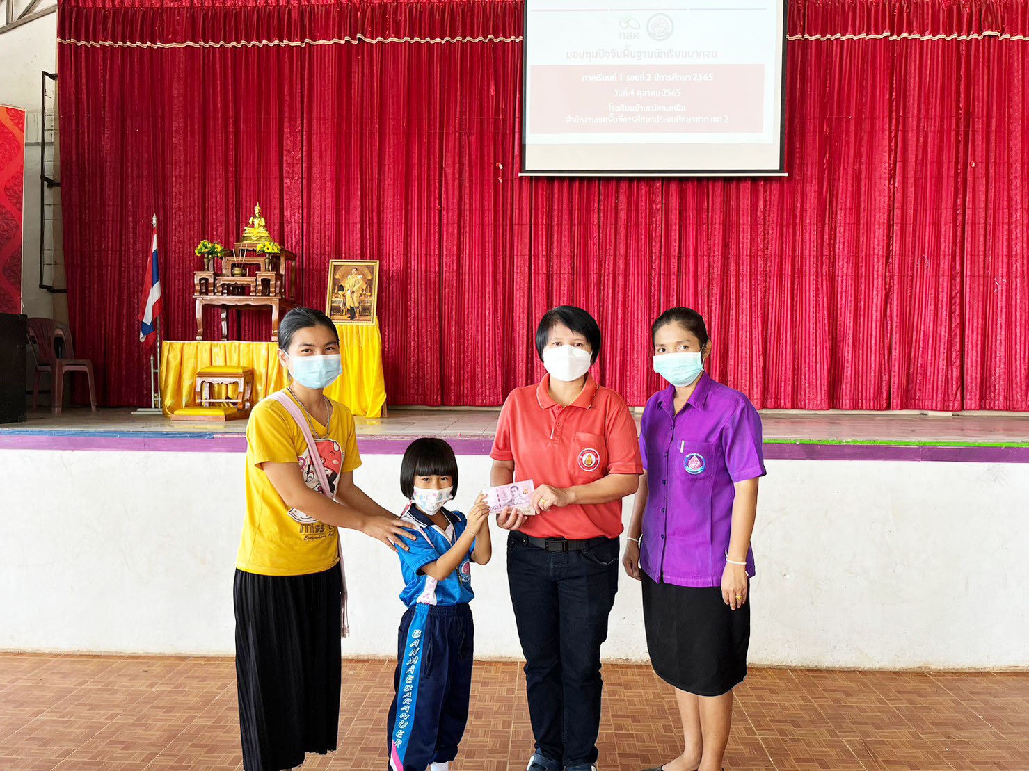 วันที่ 4 ตุลาคม 2565 นางสาวหัสยา คงแก้ว ผู้อำนวยการโรงเรียนบ้านทุ่งถ้ำ รักษาการในตำแหน่ง ผู้อำนวยการโรงเรียนบ้านแม่สละเหนือ พร้อมด้วยครูประจำชั้น ได้มอบเงินอุดหนุนนักเรียนยากจนพิเศษแบบมีเงื่อนไข ให้กับนักเรียนระดับชั้นอนุบาลปีที่ 2 - ชั้นประถมศึกษาปีที่ 6 ที่ได้รับจัดสรรจากสำนักงานกองทุนเพื่อความเสมอภาคทางการศึกษา (กสศ.) ในภาคเรียนที่ 1 (รอบ 2) ปีการศึกษา 2565 จำนวนทั้งสิ้น 142 ทุน ณ หอประชุมโรงเรียนบ้านแม่สละเหนือ