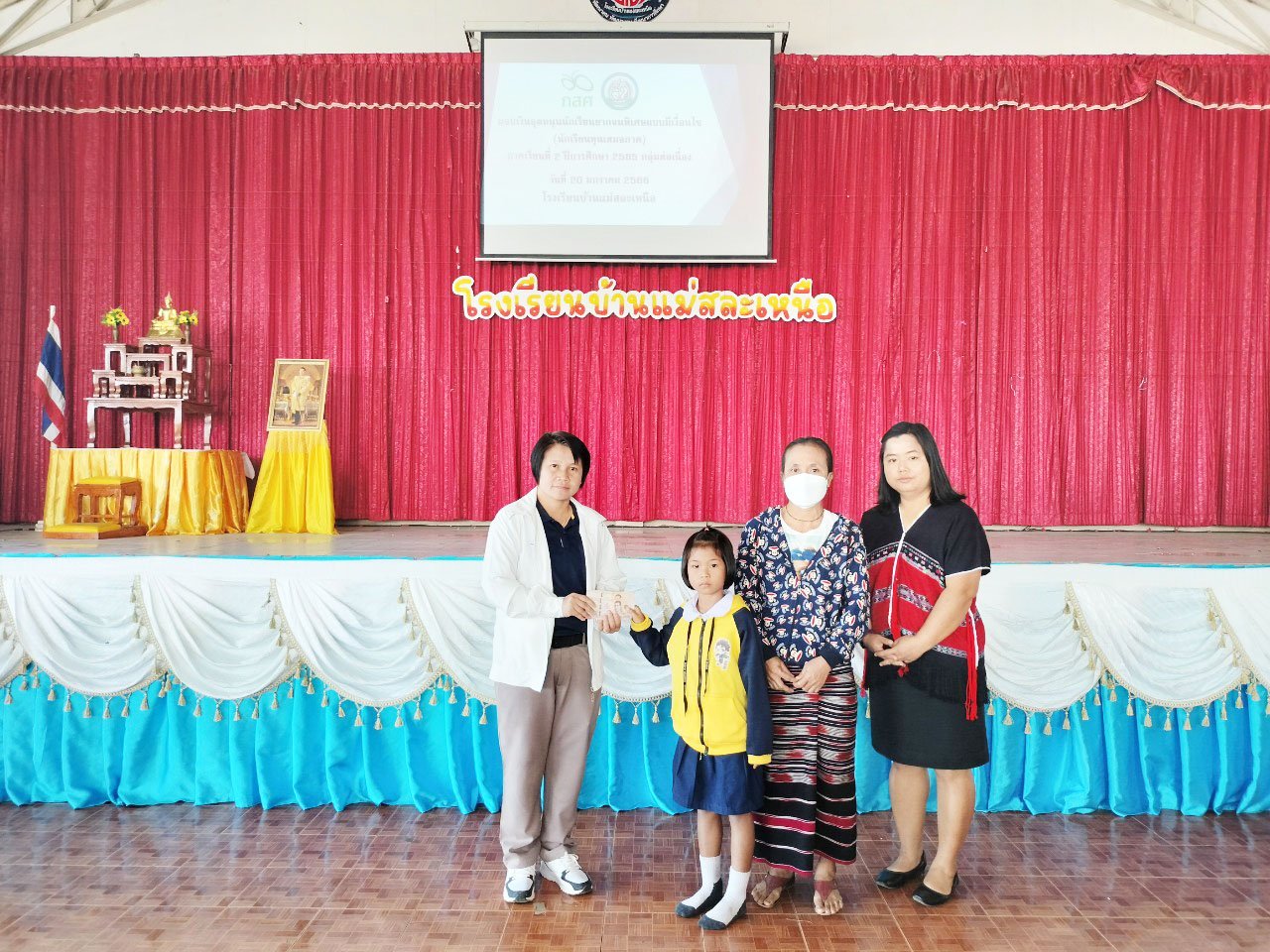 วันที่ 20 มกราคม 2566 นางสาวหัสยา คงแก้ว ผู้อำนวยการโรงเรียนบ้านทุ่งถ้ำ รักษาการในตำแหน่ง ผู้อำนวยการโรงเรียนบ้านแม่สละเหนือ พร้อมด้วยครูประจำชั้น ได้มอบเงินอุดหนุนนักเรียนยากจนพิเศษแบบมีเงื่อนไข (นักเรียนทุนเสมอภาค) กลุ่มต่อเนื่อง ที่ได้รับจัดสรรจากสำนักงานกองทุนเพื่อความเสมอภาคทางการศึกษา (กสศ.) ในภาคเรียนที่ 2 ปีการศึกษา 2565 ให้กับนักเรียนและผู้ปกครอง จำนวนทั้งสิ้น 277 ทุน ณ หอประชุมโรงเรียนบ้านแม่สละเหนือ