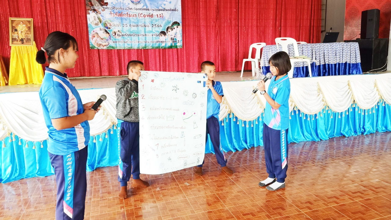 วันที่ 25 กุมภาพันธ์ 2566 นางสาวหัสยา คงแก้ว ผู้อำนวยการโรงเรียนบ้านทุ่งถ้ำ รักษาการในตำแหน่ง ผู้อำนวยการโรงเรียนบ้านแม่สละเหนือ ได้มอบหมายนางสุทินา วงศ์หมื่น ครูโรงเรียนบ้านแม่สละเหนือ เป็นประธานเปิดโครงการเฝ้าระวัง ป้องกัน และควบคุมโรคติดเชื้อไวรัสโคโรนา 2019 (Covid-19) ในการอบรมครั้งนี้มีคณะครูและนักเรียนระดับอนุบาล 2 - ชั้นประถมศึกษาปีที่ 6 เข้าร่วมอบรม ณ หอประชุมโรงเรียนบ้านแม่สละเหนือช่วงเช้าได้รับเกียรติจากเจ้าหน้าที่สาธรณาสุข จากโรงพยาบาลส่งเสริมสุขภาพตำบลแม่หละ มาเป็นวิทยากรให้ความรู้และแนวทางในการปฏิบัติการเฝ้าระวัง ป้องกัน โรคติดเชื้อไวรัสโคโรนา 2019 (Covid-19) ช่วงบ่ายนักเรียนร่วมกิจกรรมกลุ่มจัดทำแผนฝังความคิด สรุปประเดินสำคัญ พร้อมนำเสนอผลงานของแต่ละกลุ่ม เพื่อฝึกให้นักเรียนได้กล้าแสดงออก