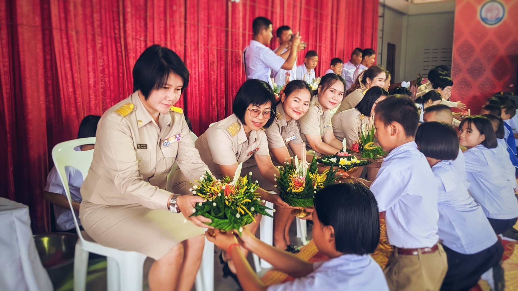 2. พิธีสวดคำบูชาบูรพาจารย์ ท่องคำปฏิญาณตน และมอบพานแด่คณะผู้บริหาร และคณะครู