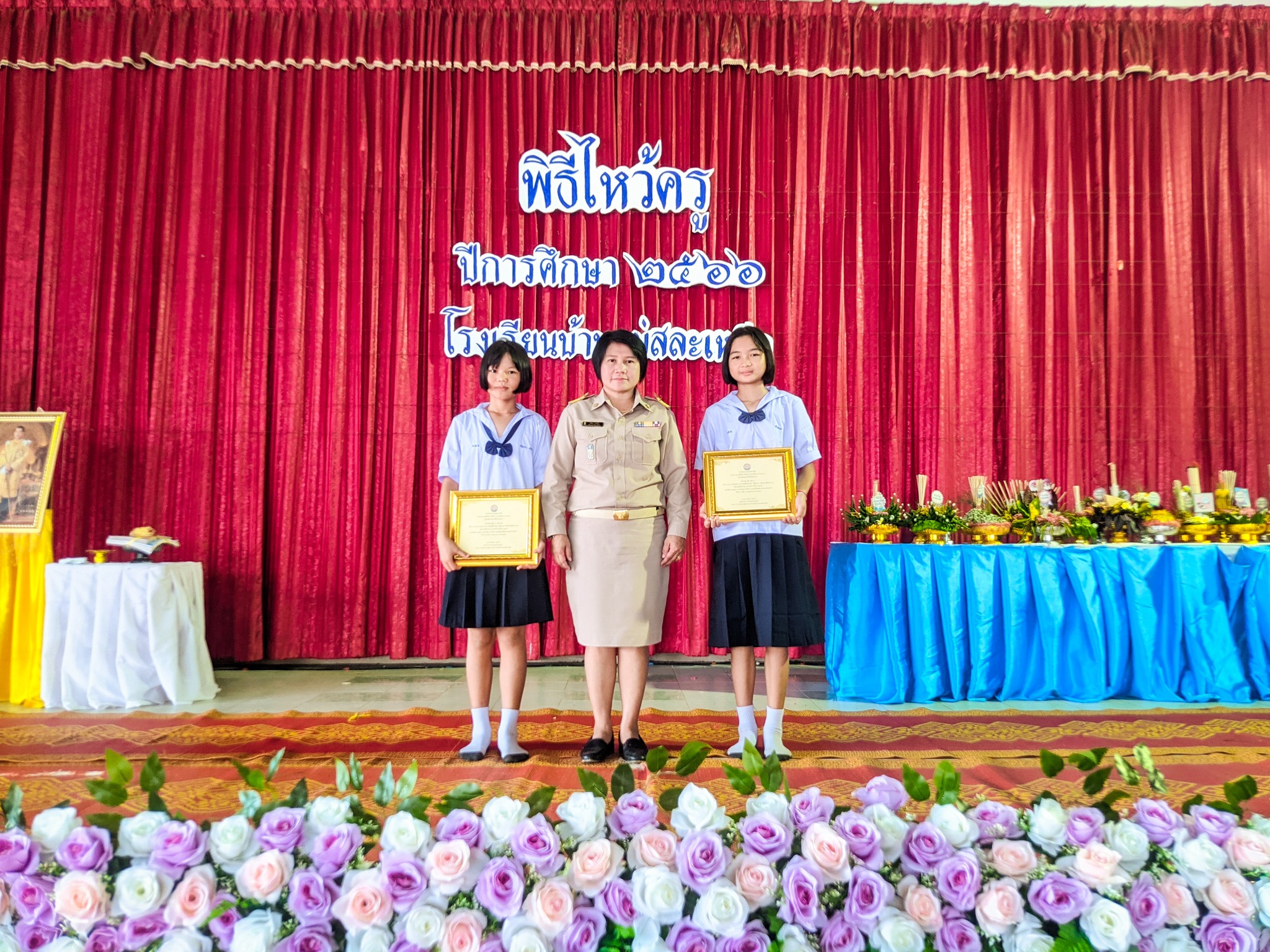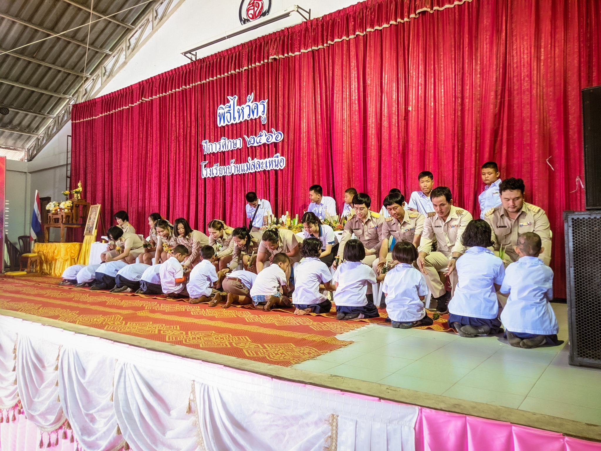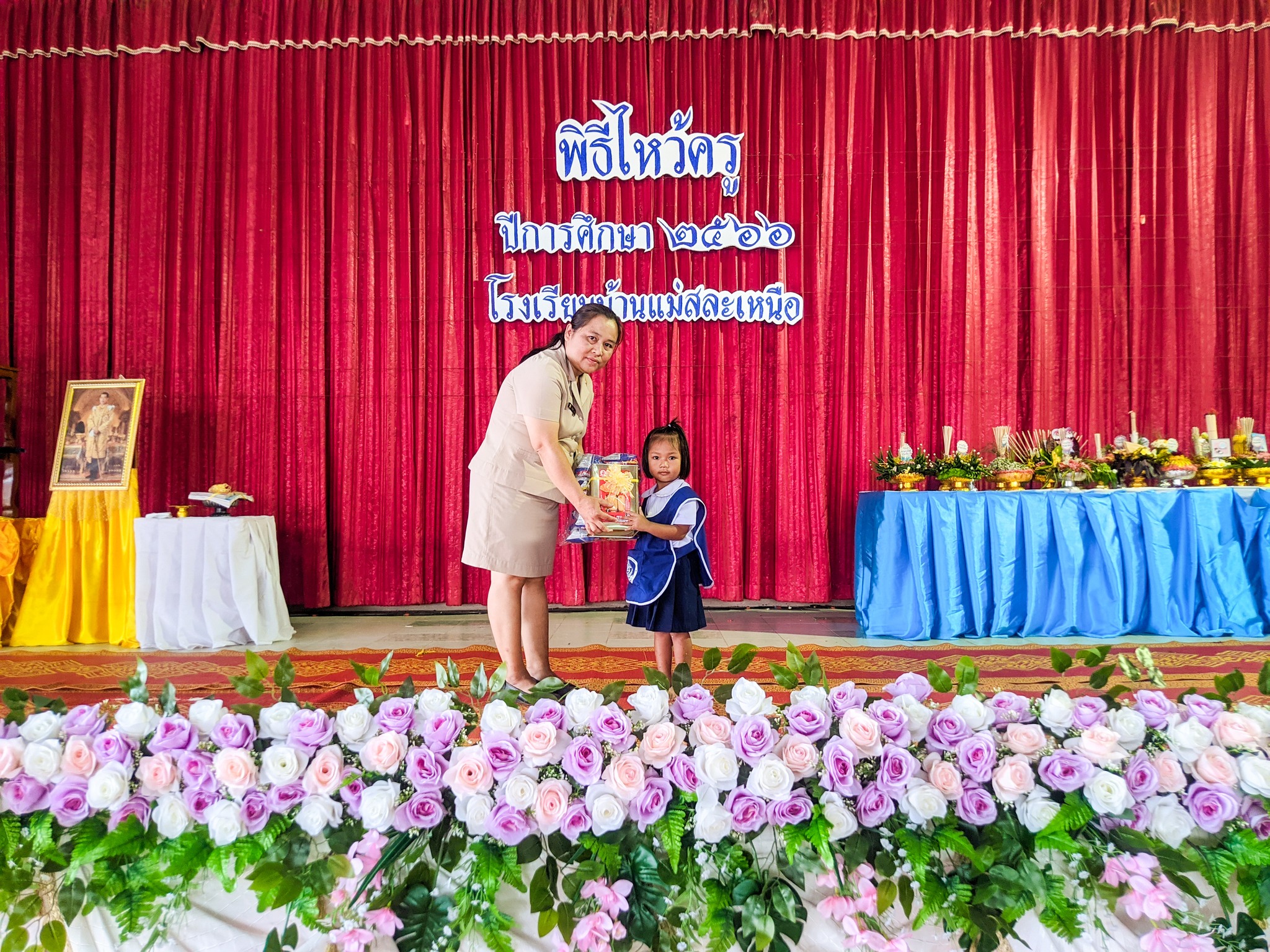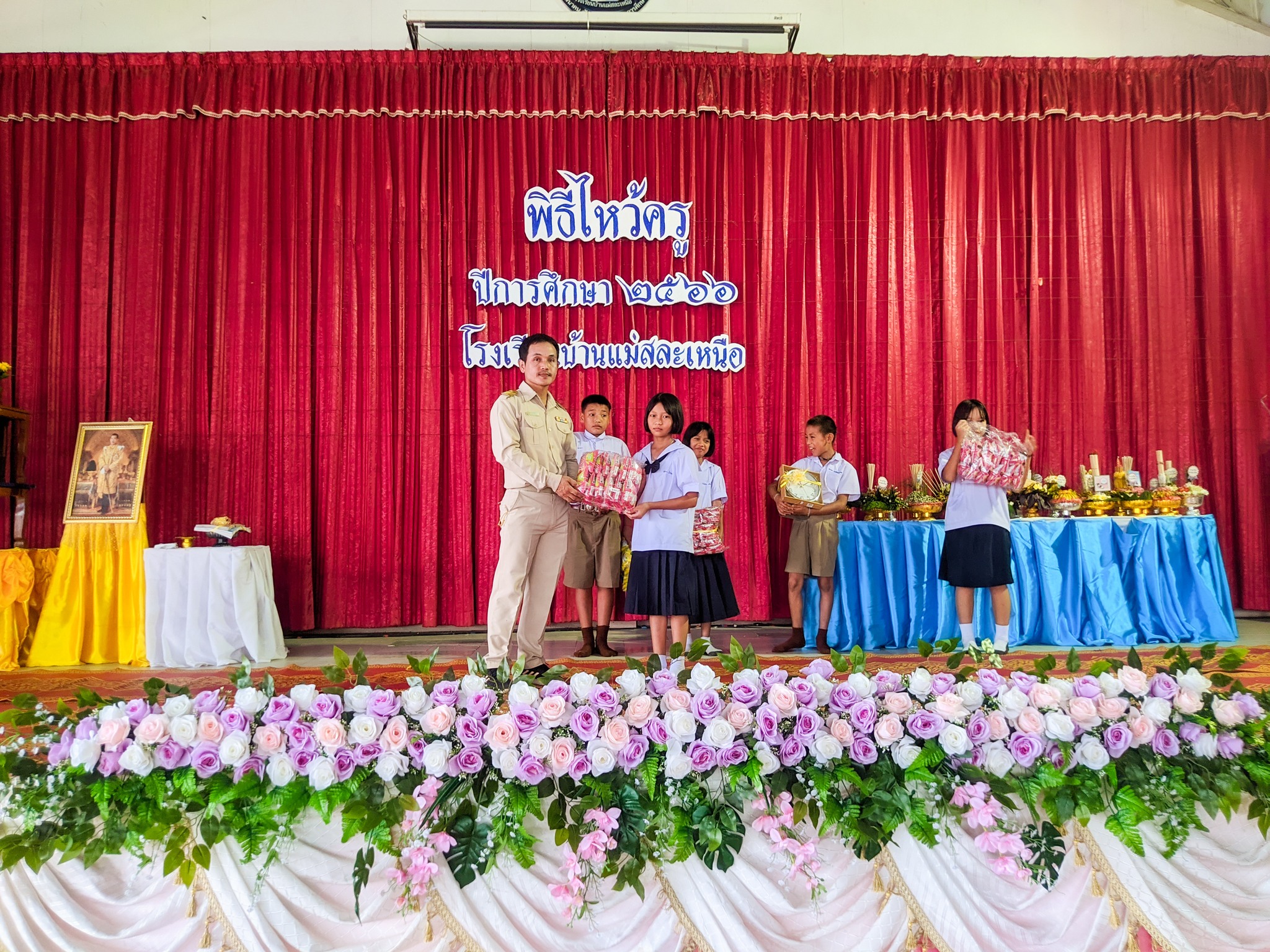 วันที่ 16 มิถุนายน 2566 นางสาวหัสยา คงแก้ว ผู้อำนวยการโรงเรียนบ้านทุ่งถ้ำ รักษาการในตำแหน่ง ผู้อำนวยการโรงเรียนบ้านแม่สละเหนือ เป็นประธานในกิจกรรมพิธีไหว้ครู ประจำปีการศึกษา 2566 โดยมีรายละเอียดกิจกรรมดังนี้