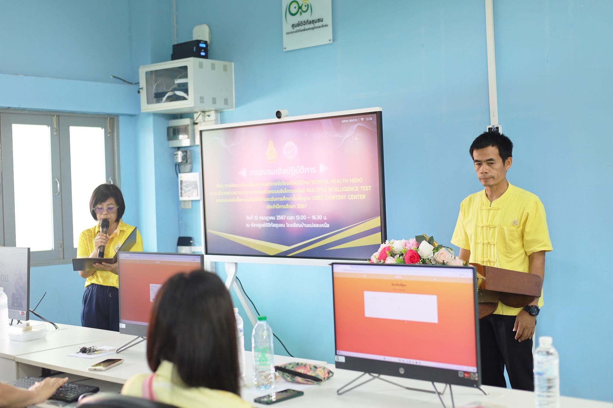 วันที่ 12 กรกฎาคม 2567 นายสุพล สาเป็ง ผู้อำนวยการโรงเรียนบ้านแม่สละเหนือ เป็นประธานกล่าวเปิดการอบรมเชิงปฏิบัติการ เรื่อง การพัฒนาขับเคลื่อนระบบสุขภาพจิตโรงเรียนวิถีใหม่ (School Health HERO) ระบบสำรวจแววความสามารถพิเศษด้วยระบบ-อิเล็กทรอนิกส์ (Multiple Intelligence Test) ระบบคลังสื่อเทคโนโลยีดิจิทัลระดับการศึกษาขั้นพื้นฐาน (OBEC Content Center) ประจำปีการศึกษา 2567 ตามโครงการส่งเสริมและพัฒนา สมรรถนะบุคลากรทางการศึกษา กิจกรรมอบรมสัมมนาพัฒนาศักยภาพครู ณ ห้องศูนย์ดิจิทัลชุมชน โรงเรียนบ้านแม่สละเหนือ ผู้เข้ารับการอบรมเป็นข้าราชการครู และบุคลากรทางการศึกษา โรงเรียนบ้านแม่สละเหนือ