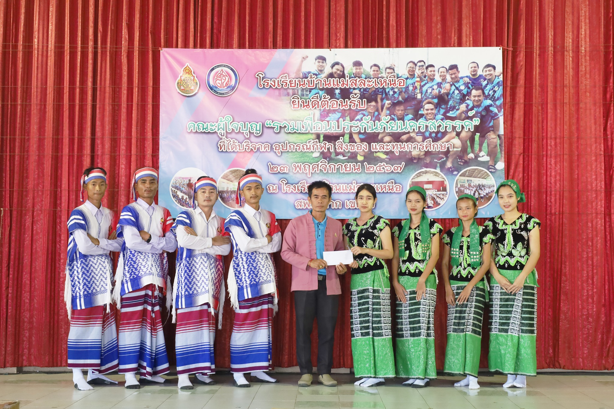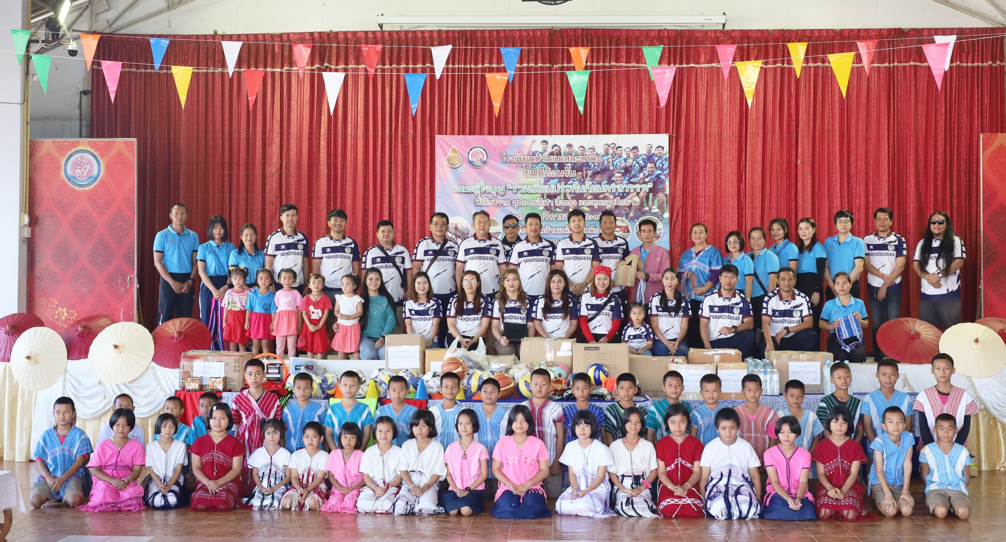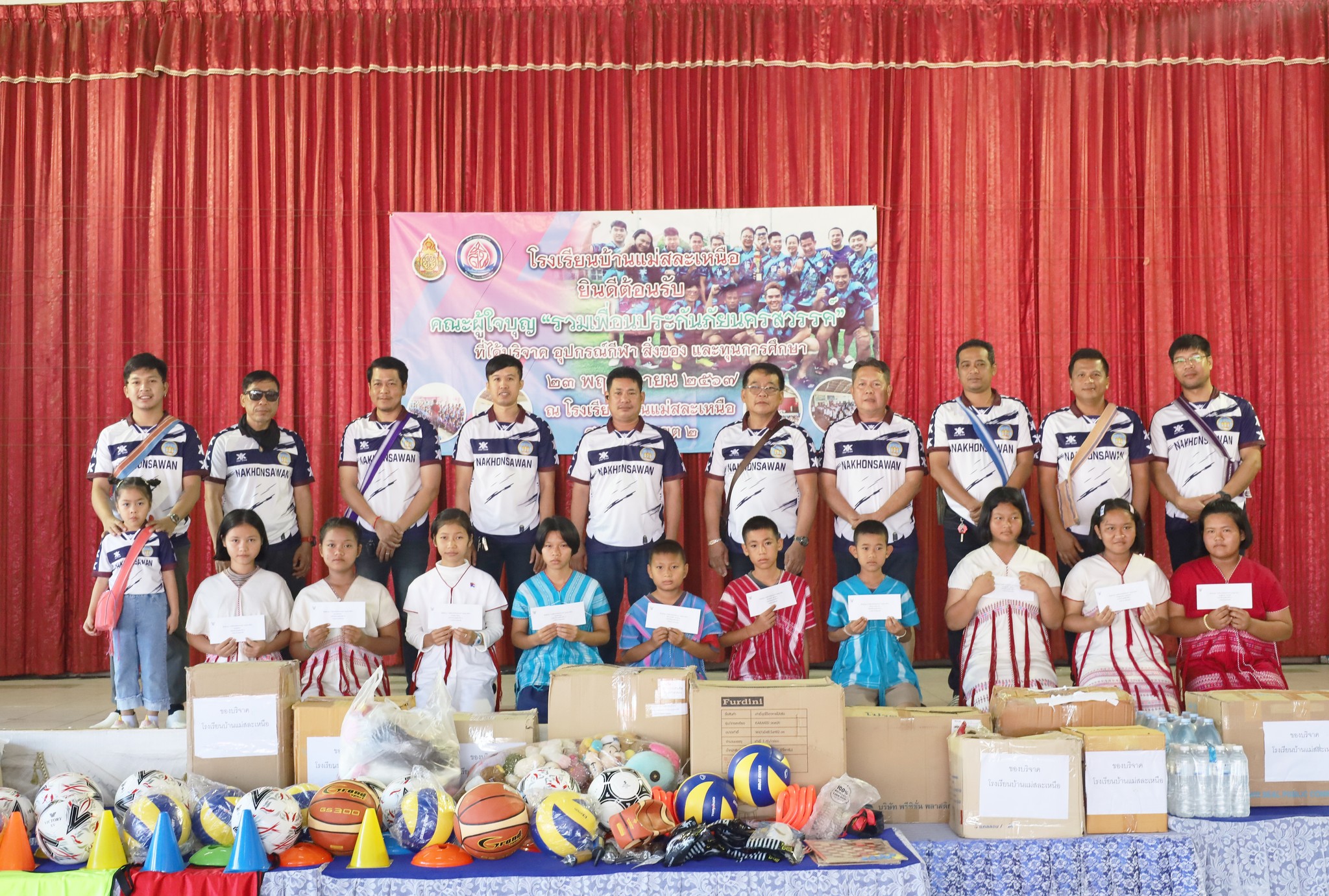 วันที่ 23 พฤศจิกายน 2567 โรงเรียนบ้านแม่สละเหนือ คณะกรรมการสถานศึกษาขั้นพึ้นฐาน ผู้บริหาร คณะครู ผู้ปกครอง และนักเรียน ขอขอบพระคุณ คณะผู้ใจบุญ รวมเพื่อนประกันภัยนครสวรรค์ จากจังหวัดนครสวรรค์ ได้มอบอุปกรณ์กีฬา สิ่งของ และทุนการศึกษาแก่นักเรียนโรงเรียนบ้านแม่สละเหนือ ทางโรงเรียนขอขอบพระคุณท่านเป็นอย่างสูง