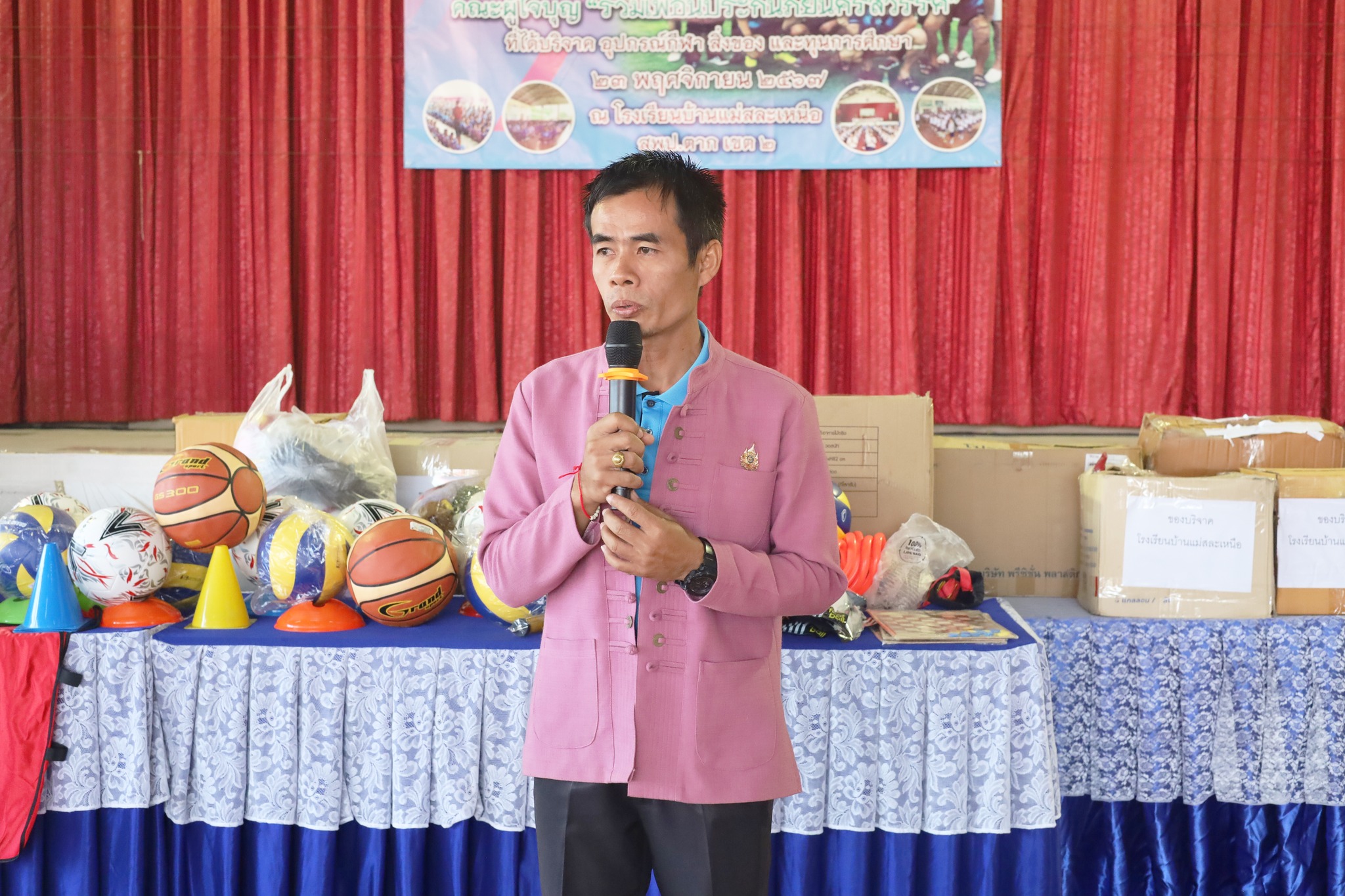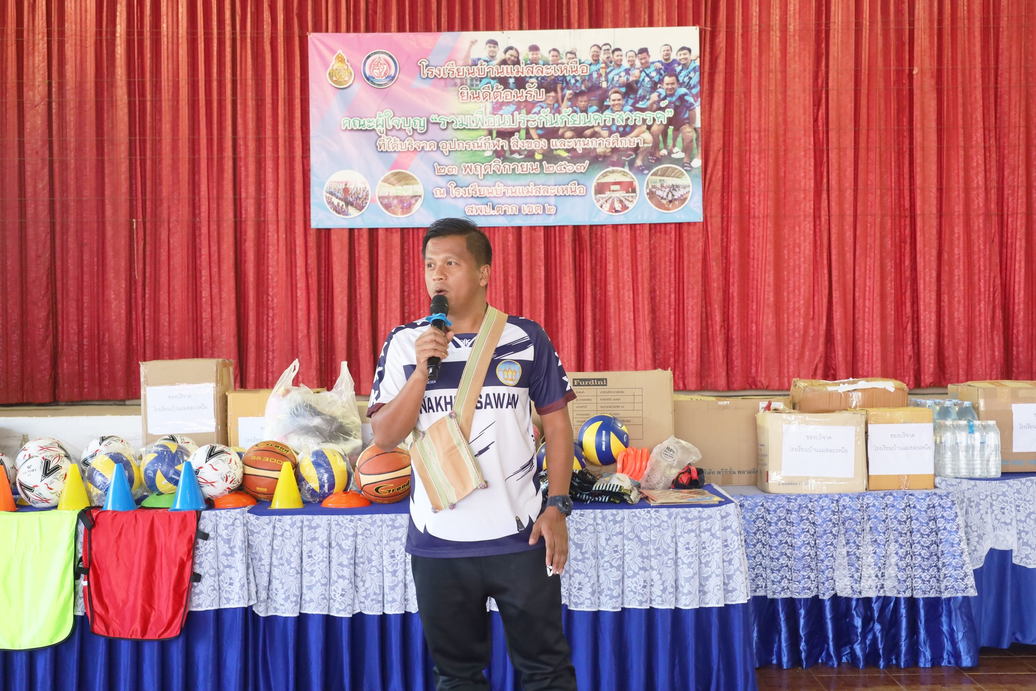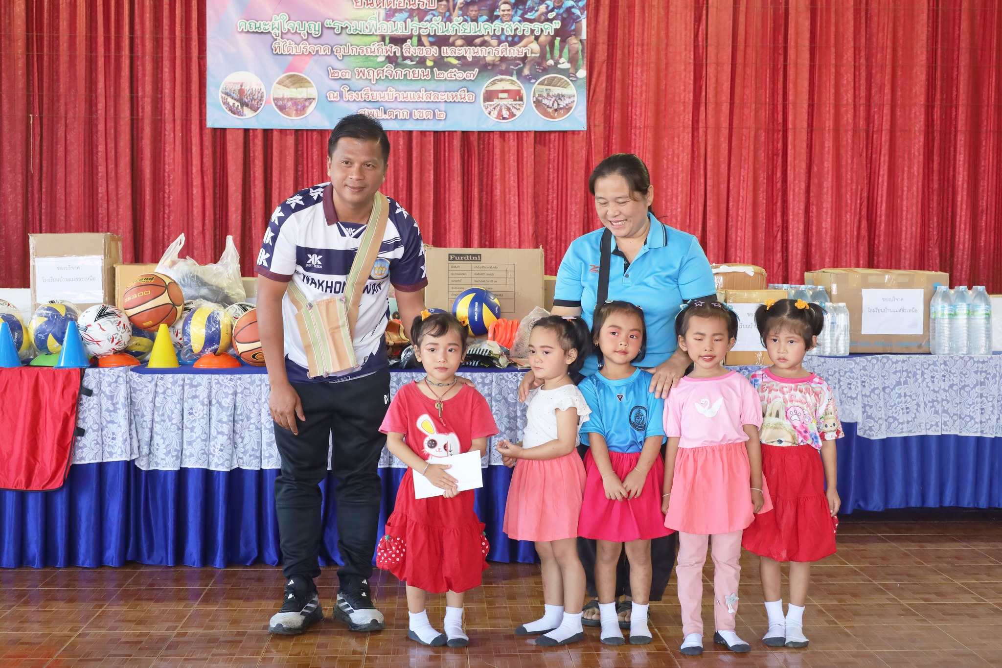 วันที่ 23 พฤศจิกายน 2567 โรงเรียนบ้านแม่สละเหนือ คณะกรรมการสถานศึกษาขั้นพึ้นฐาน ผู้บริหาร คณะครู ผู้ปกครอง และนักเรียน ขอขอบพระคุณ คณะผู้ใจบุญ รวมเพื่อนประกันภัยนครสวรรค์ จากจังหวัดนครสวรรค์ ได้มอบอุปกรณ์กีฬา สิ่งของ และทุนการศึกษาแก่นักเรียนโรงเรียนบ้านแม่สละเหนือ ทางโรงเรียนขอขอบพระคุณท่านเป็นอย่างสูง