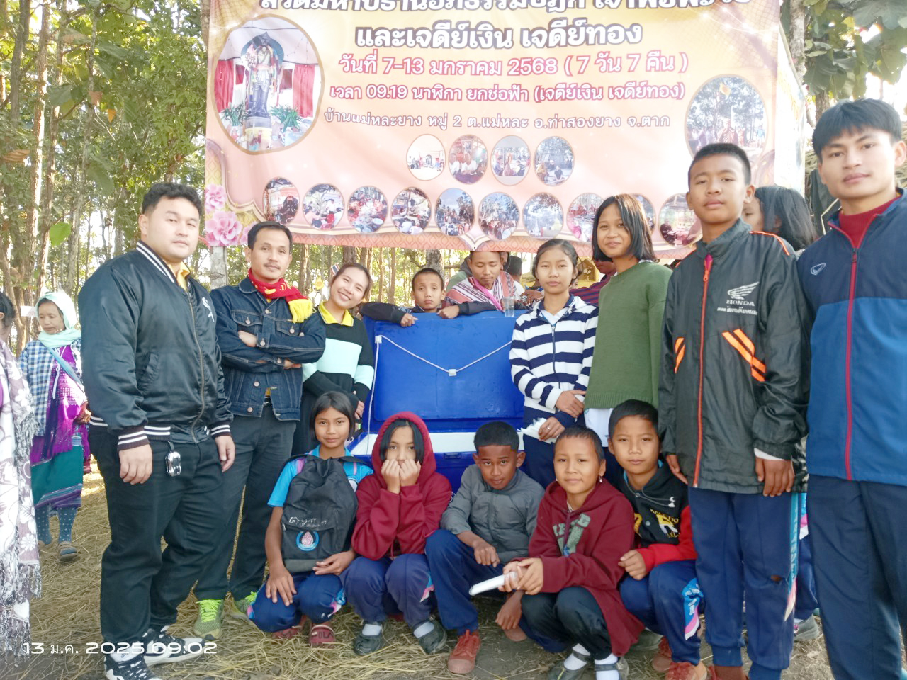 วันที่ 13 มกราคม 2568 นำโดย นายสุพล สาเป็ง ผู้อำนวยการโรงเรียนบ้านแม่สละเหนือ พร้อมด้วยครูคณะครู และนักเรียน ร่วมทำบุญโรงทานน้ำดื่ม และช่วยกันเก็บขยะ เนื่องในงานพิธีสวดมหาปรานอภิธรรมปิฎก เจ้าพ่อพะวอ และเจดีย์เงิน เจดีย์ทอง ยกยอดฟ้า (เจดีย์เงิน เจดีย์ทอง) บ้านแม่หละยาง หมู่ 2 ต.แม่หละ อ.ท่าสองยาง จ.ตาก