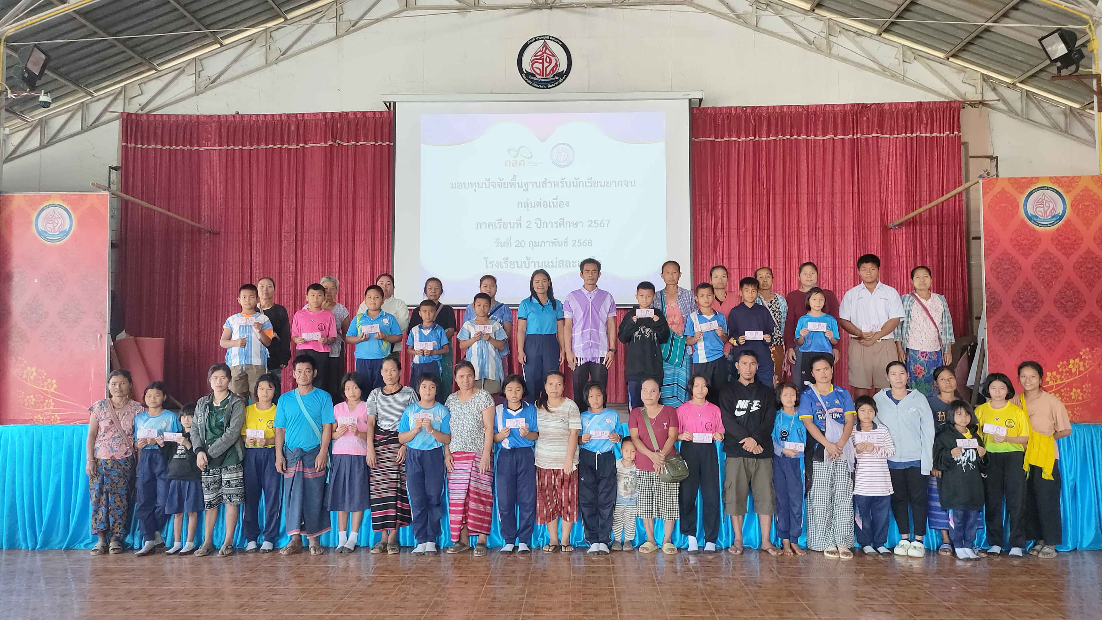 วันที่ 20 กุมภาพันธ์ 2568 นำโดย นายสุพล สาเป็ง ผู้อำนวยกาโรงเรียนบ้านแม่สละเหนือ พร้อมด้วยครูประจำชั้น ได้มอบเงินทุนปัจจัยพื้นฐานสำหรับนักเรียนยากจน (กลุ่มต่อเนื่อง) ที่ได้รับจัดสรรจากสำนักงานกองทุนเพื่อความเสมอภาคทางการศึกษา (กสศ.) ในภาคเรียนที่ 2 ปีการศึกษา 2567 ให้แก่นักเรียนและผู้ปกครอง จำนวนทั้งสิ้น 259 ทุน ณ หอประชุมโรงเรียนบ้านแม่สละเหนือ