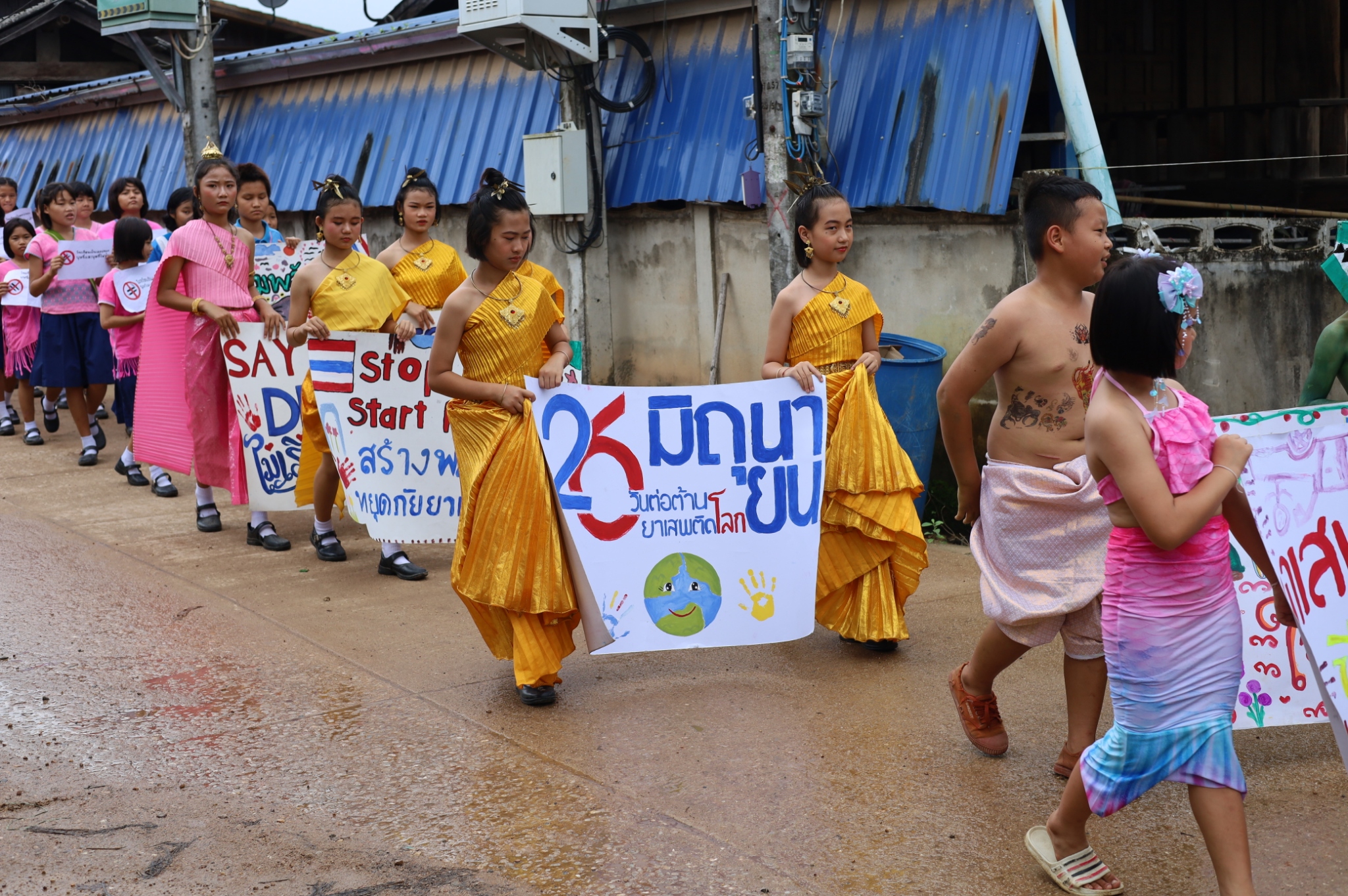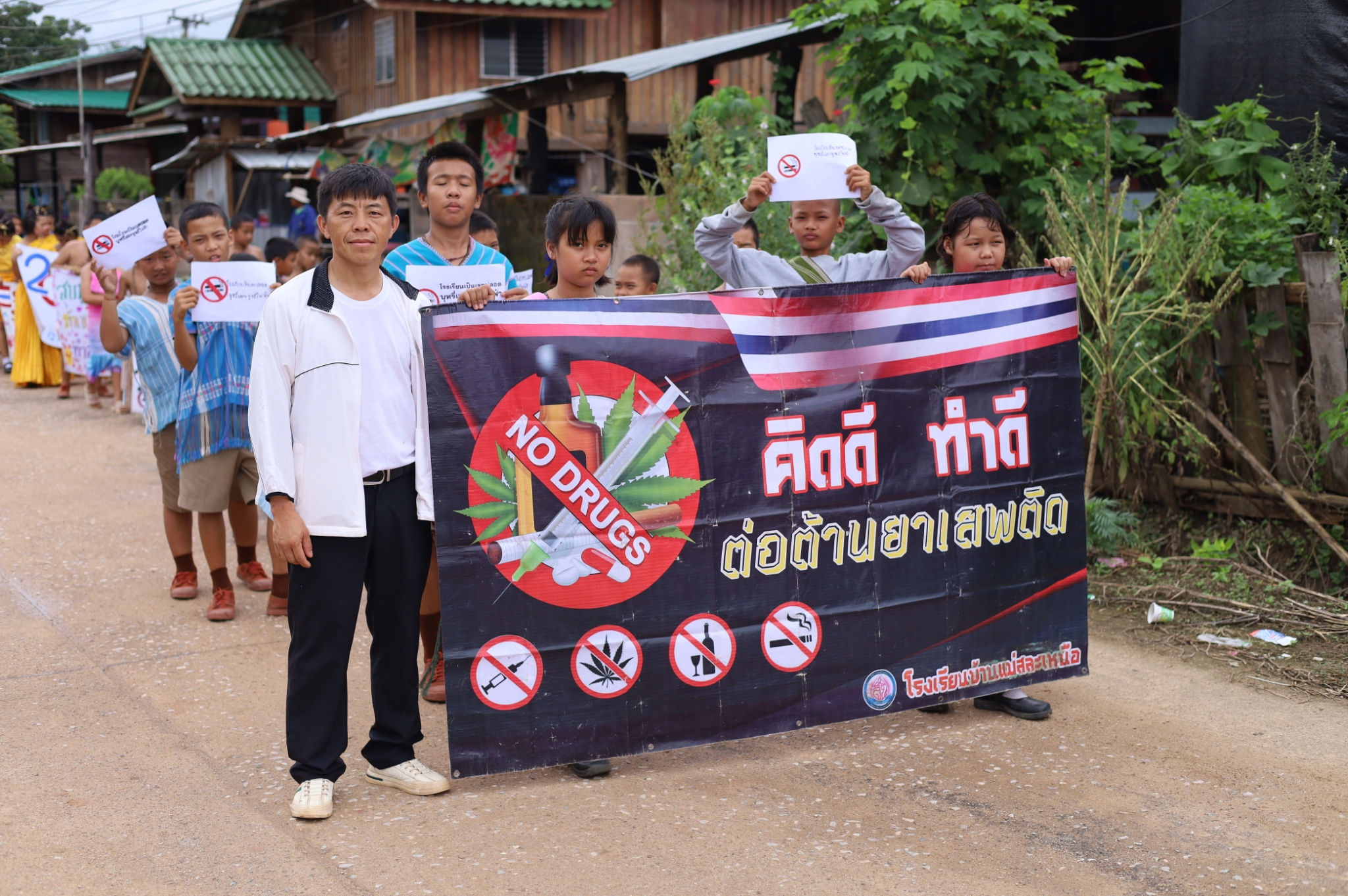 วันที่ 18 กรกฎาคม 2568 โรงเรียนบ้านแม่สละเหนือ โดยนายสุพล สาเป็ง ผู้อำนวยการโรงเรียน พร้อมคณะครูและบุคลากรทางการศึกษา นักเรียน ร่วมกับ อสม.บ้านแม่หละ จัดกิจกรรมวันต่อต้านยาเสพติดและเดินรณรงค์ต่อต้านยาเสพติด พร้อมกับเดินรณรงค์ป้องกันยุงลาย ที่บ้านแม่หละ หมู่ที่ 2 ตำบลแม่หละ อำเภอท่าสองยาง จังหวัดตาก มีการจัดบอร์ดประชาสัมพันธ์ ให้ความรู้เกี่ยวกับโทษของยาเสพติด รับรู้และเห็นถึงความสำคัญของวันต่อต้านยาเสพติด ในการที่จะร่วมมือ เพื่อแก้ไขปัญหายาเสพติด เพื่อปลูกฝังให้นักเรียนและผู้คนในชุมชน ไม่ยุ่งเกี่ยวกับ ยาเสพติดและอบายมุขทุกชนิด